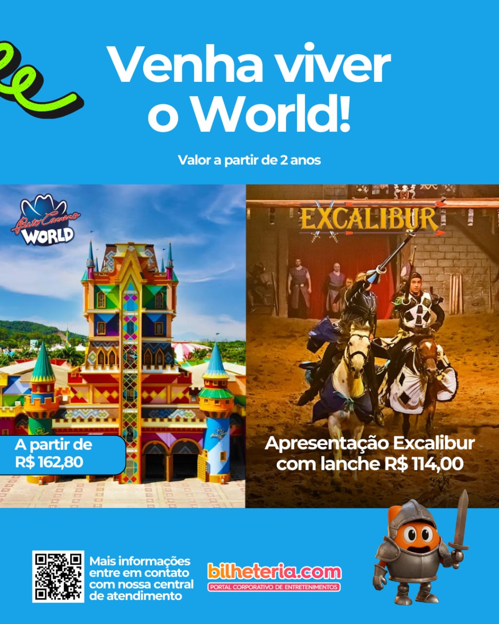 Além do Animália, a Bilheteria.com tem excelentes excursões para Parques Témáticos, viagens e demais atrações. Visite o site da empresa e acesse para verificar as aventuras oferecidas, com a senha de acesso social@2025, para pagamento em 10 vezes. Confira: