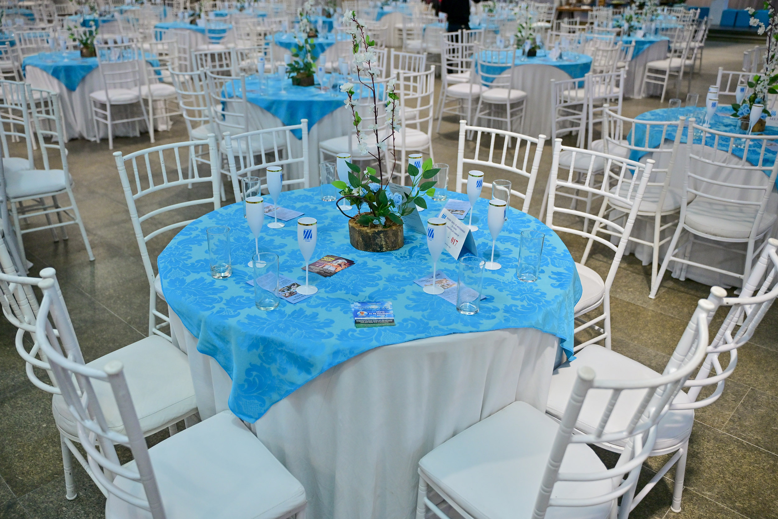 Nas mesas todos foram brindados com taças personalizadas, que podiam ser levadas para casa junto às fotos instantâneas tiradas de cada pessoa ao entrar no Baile (como acima com Tanivaldo Dantas Presidente do Sintius com sua esposa e a diretora financeira Rosana).