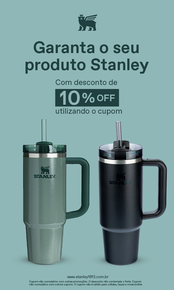 Regras: Cupom não cumulativo com outras promoções ou outros cupons; O desconto não contempla o frete; Não é válido para collabs, cross bottle, taças e lancheiras; O benefício não estará disponível durante a Black Friday.